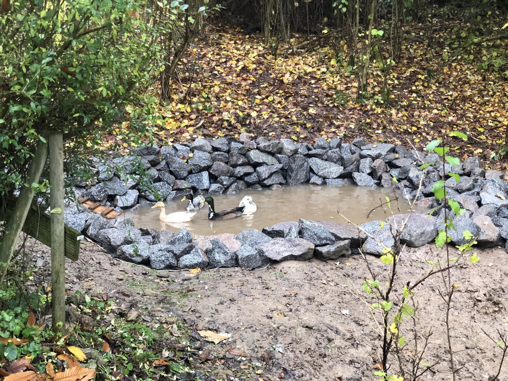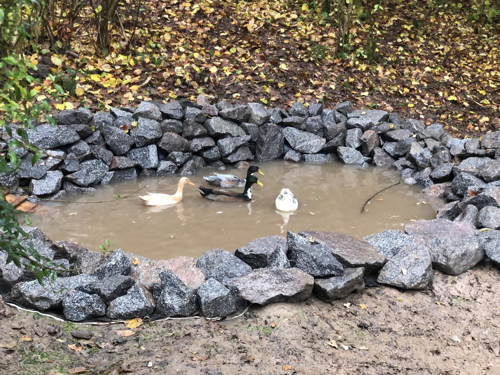 Den Enten hatte diese Version gut gefallen, denn sie konnten mit ihren Schnäbeln so richtig Matschen und den Rand durchsuchen. Das hat sicher auch dazu beigetragen das der Teich auslief. Wir brauchten also eine neue Idee....