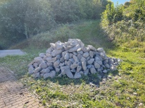 Damit das Wasser nicht versickert, haben wir uns für ein Vlies und ein Teichfolie entschieden. Darauf verteilten wir 8 Tonnen Steine aus Dem Steinbruch Stahl aus Dörrmorsbach.