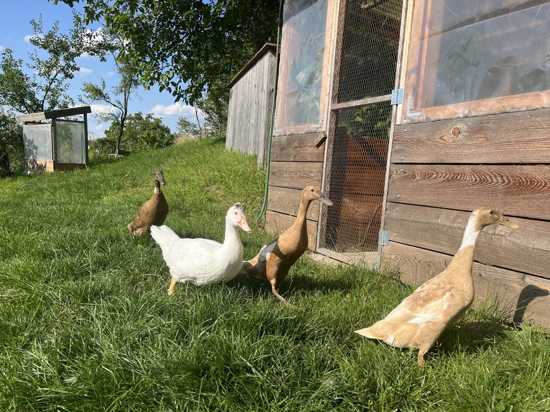 Unsere kleine Ententruppe bewegt sich frei im Garten, besucht auch mal die Nachbarn und sorgt gerade im Sommer für reichlich Eier. Unsere Überproduktion verkaufen wir gerne an interessierte, wenn